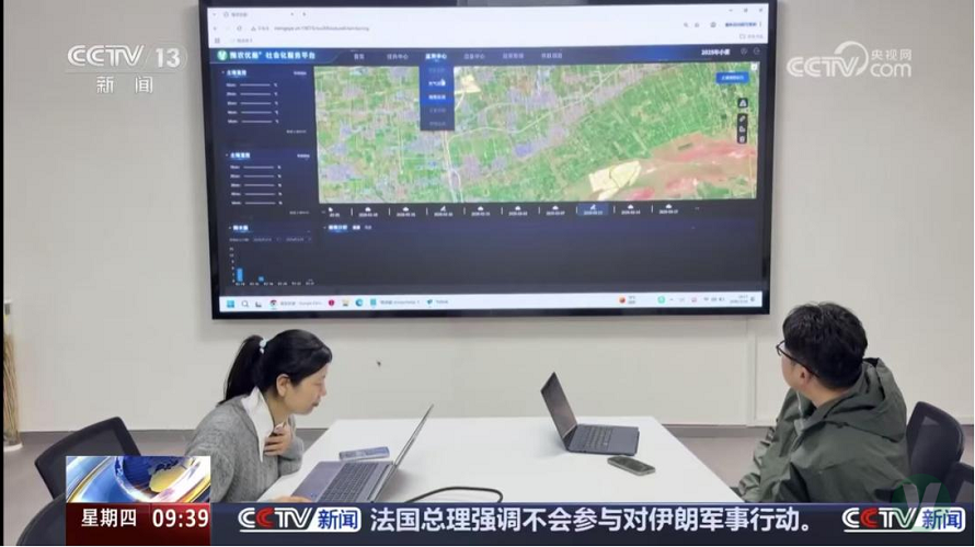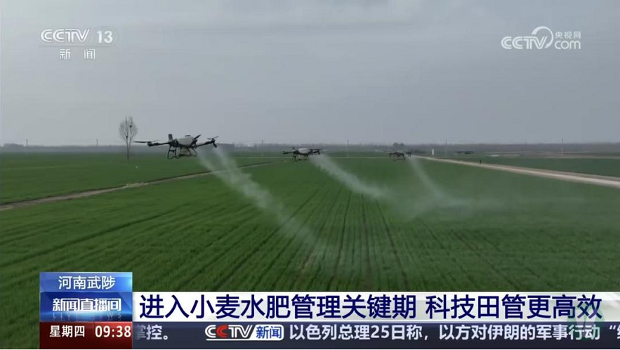 武陟縣大豐鎮黃河灘區小麥種植基地負責農業社會服務化平臺運營的技術人員接受了央視的現場采訪,詳細介紹了農業社會化服務平臺的功能作用及涵蓋項目。隨著央視《新聞直播間》的鏡頭,青綠的麥苗拔節生長,搭載北斗導航的植保無人機正在進行病蟲害防控,田間的滴灌帶像毛細血管一樣精準輸送水肥,一幅“科技春管圖”徐徐展開。