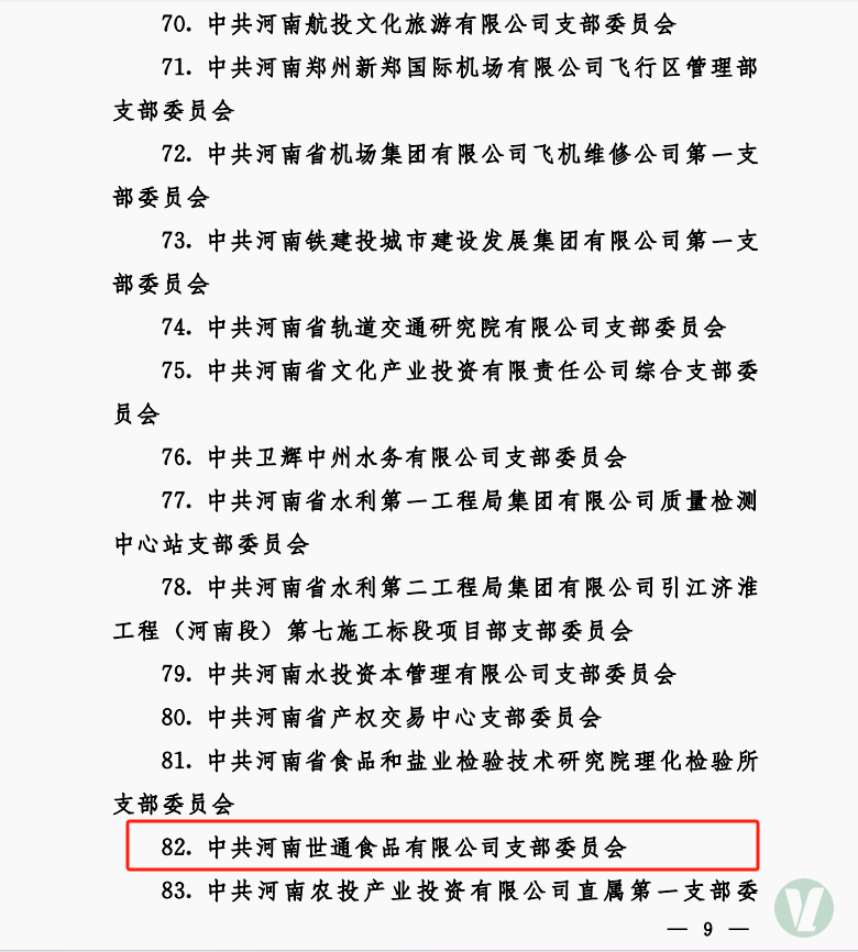 世通食品公司黨支部認(rèn)真貫徹集團黨委決策部署,以“三化三提升”為組織建設(shè)總抓手,堅持“謀經(jīng)營抓黨建、強黨建促經(jīng)營”方針,積極開展“黨建+”活動,推進落實“雙五工程”,著力打造學(xué)習(xí)型、服務(wù)型、創(chuàng)新型基層黨組織,相繼獲得國家級“高新技術(shù)企業(yè)”、河南省“農(nóng)業(yè)產(chǎn)業(yè)化省重點龍頭企業(yè)”、“河南省綠色豆制品加工裝備工程技術(shù)研究中心”、“中國豆制品行業(yè)50強企業(yè)”、“質(zhì)量安全示范單位”、河南省“專精特新企業(yè)”、河南省糧食行業(yè)“十大知名品牌”、省管企業(yè)標(biāo)準(zhǔn)化黨支部、先鋒黨支部、鄭州市工程技術(shù)研究中心等榮譽。此次獲得省管企業(yè)“五星”黨支部榮譽稱號,不僅是對世通公司黨員干部以及全職工取得成績的肯定,更為集團其他黨支部創(chuàng)建工作提供了樣本,樹立了標(biāo)桿。